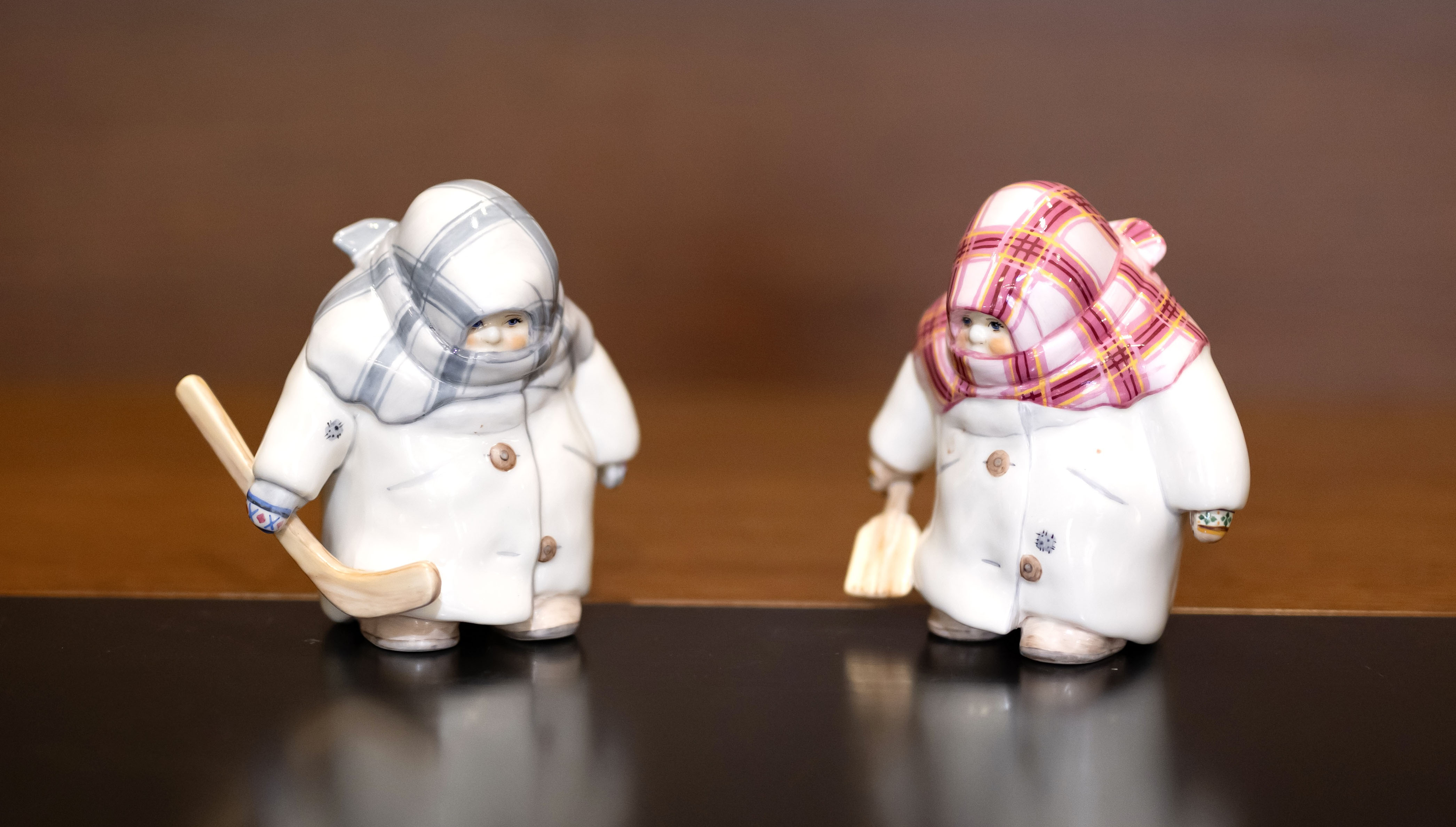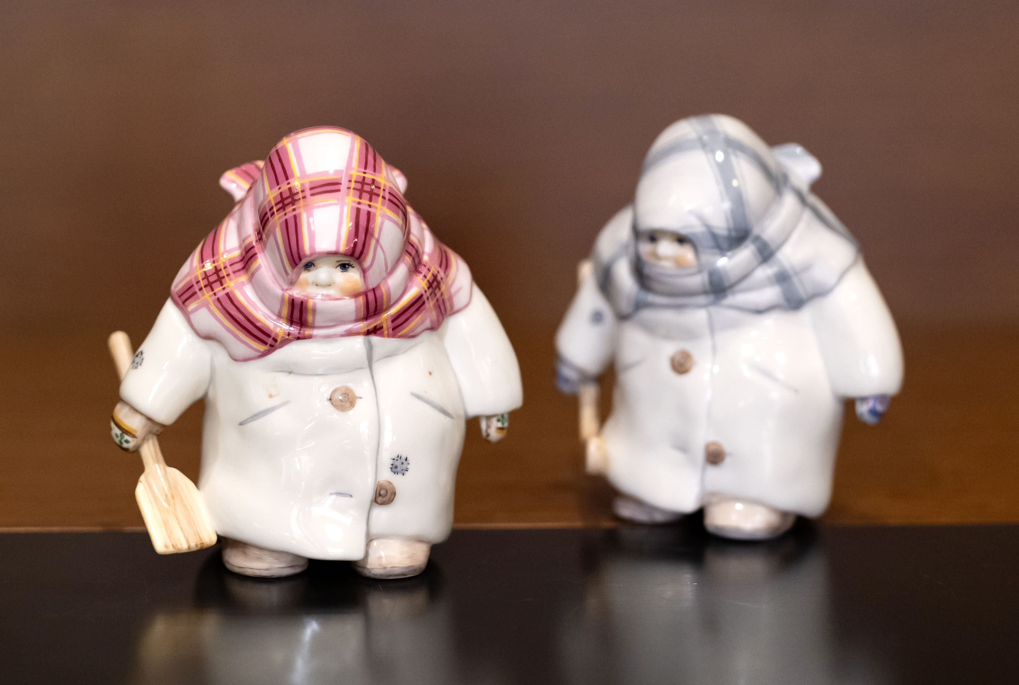 Фарфоровые фигурки девочек, закутанных в шарфы.