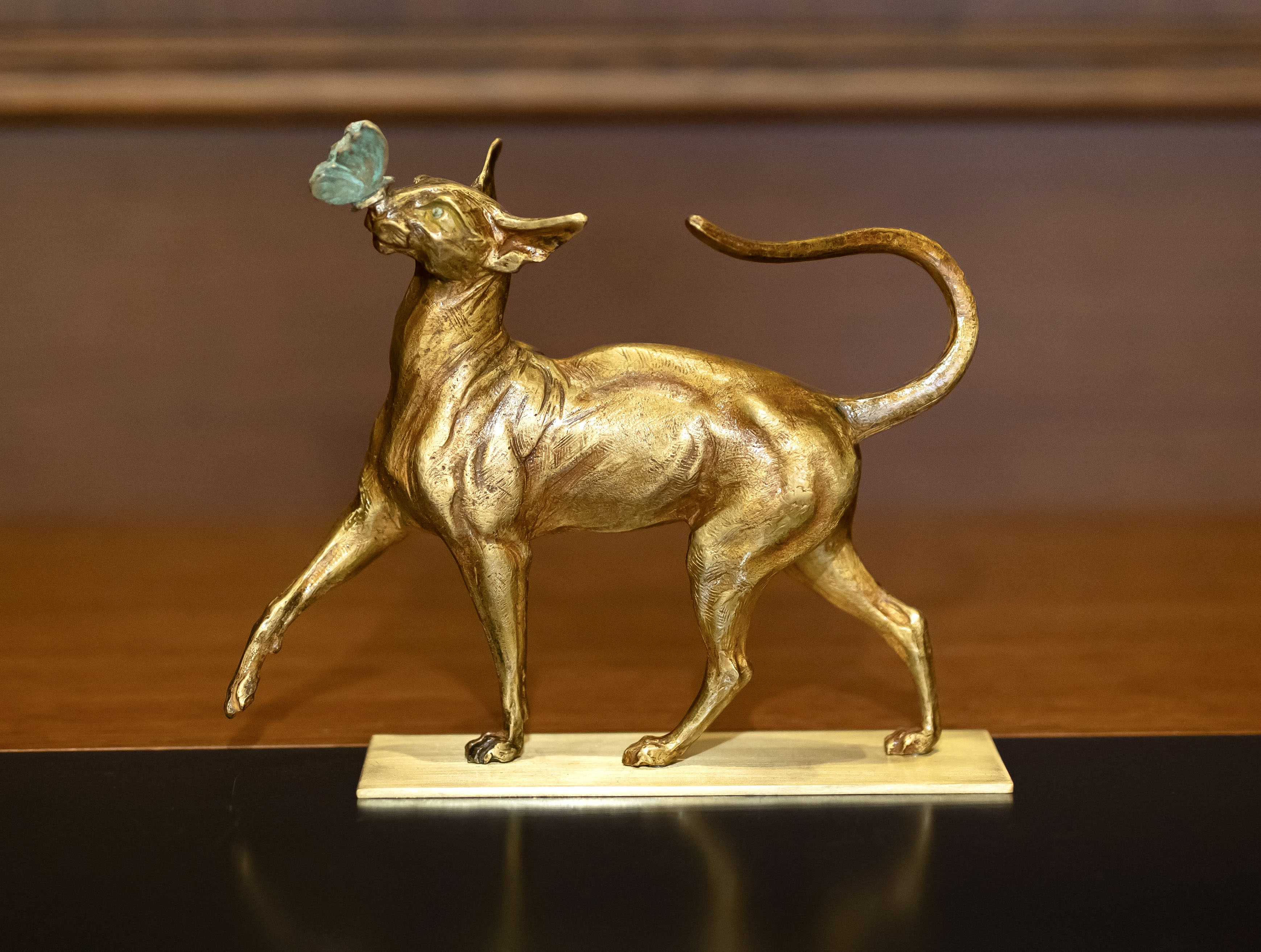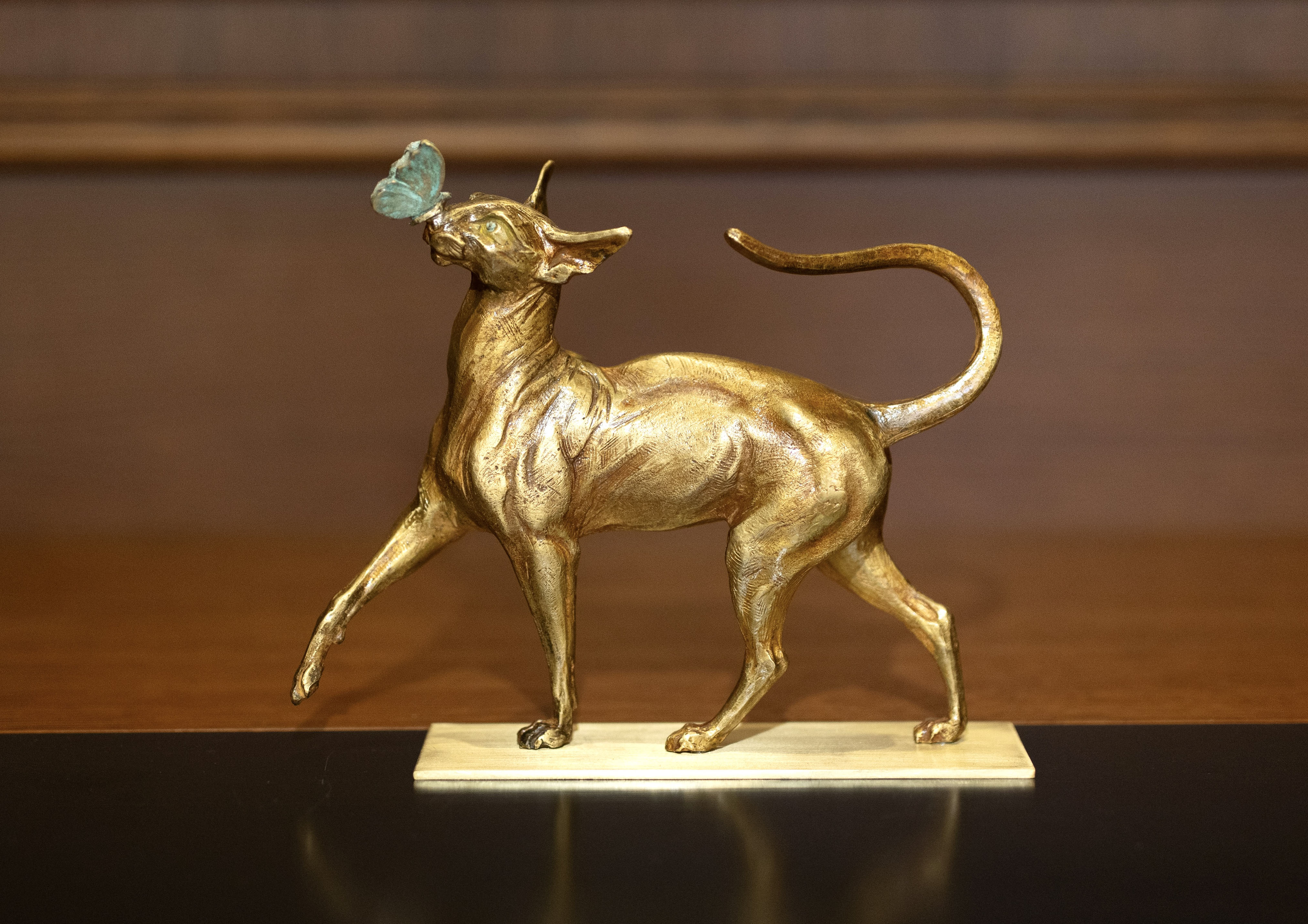 Бронзовая кошка, играющая с бабочкой
