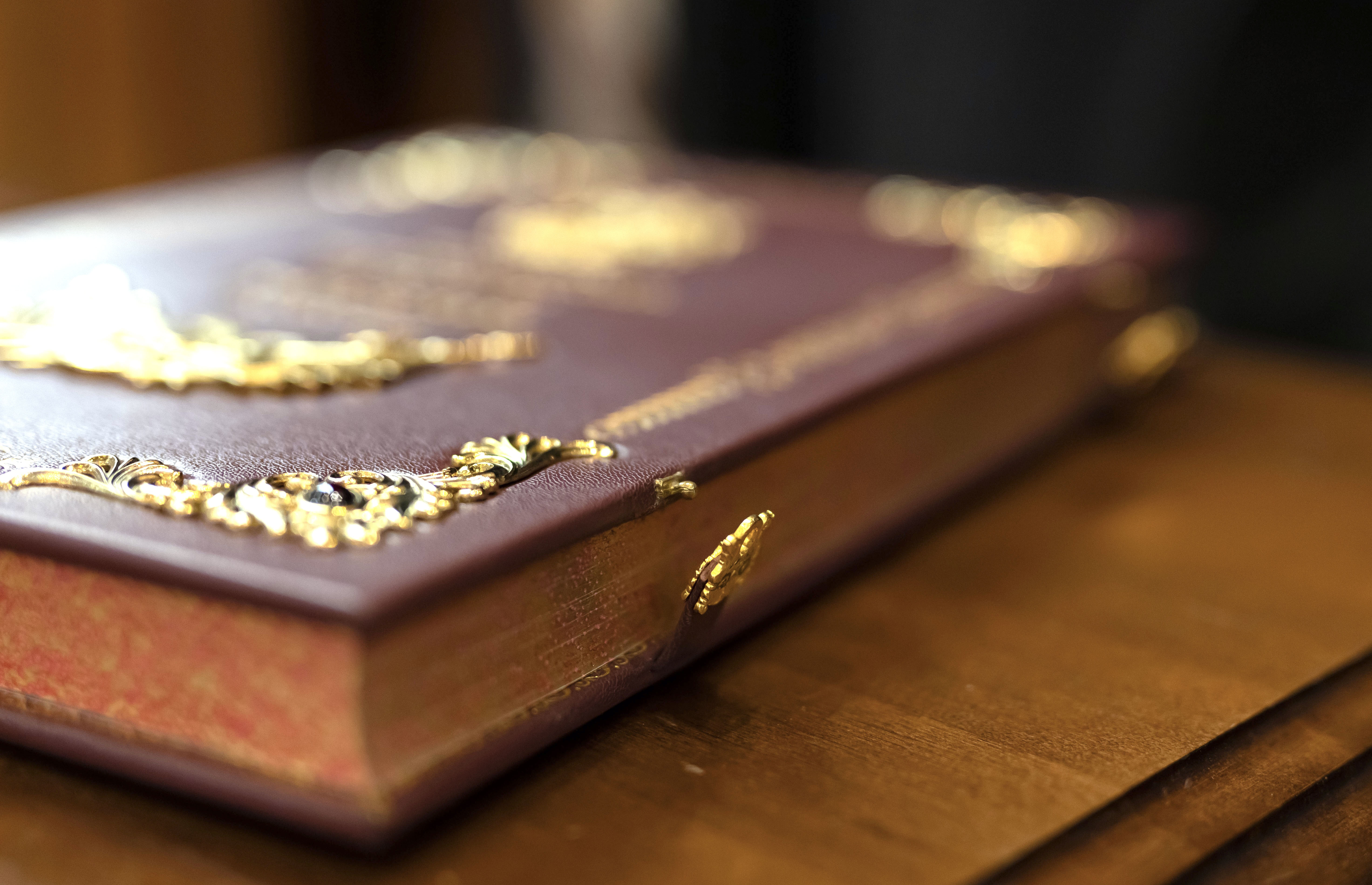 Обложка украшена позолоченными вставками и вензелями.