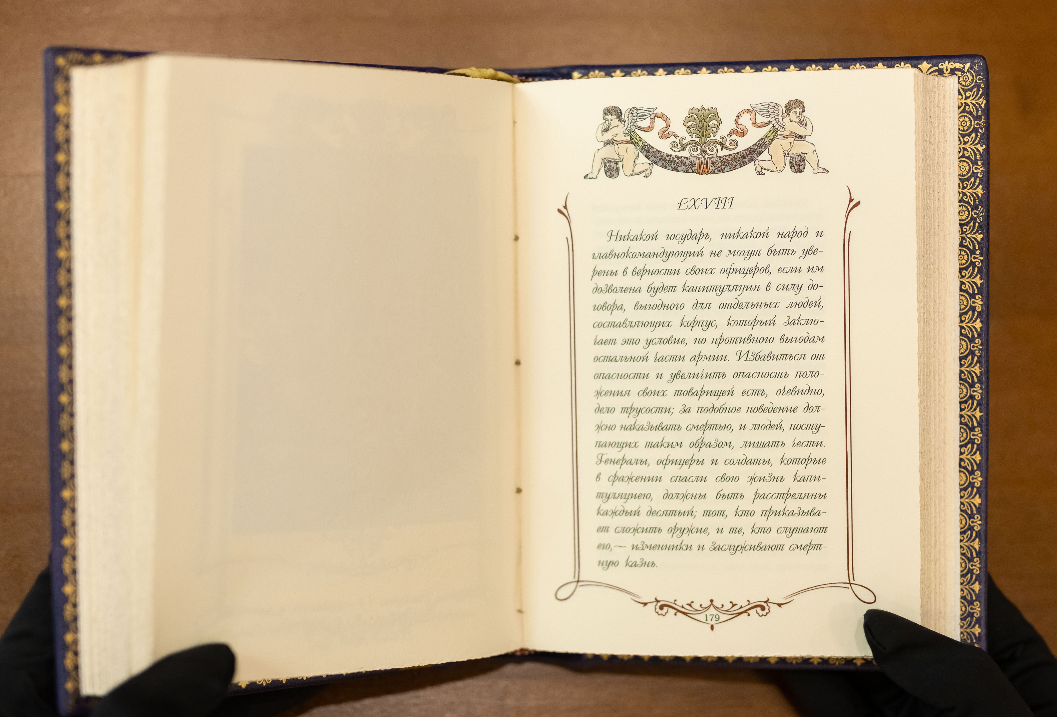 Слепое тиснение золотой фольгой.